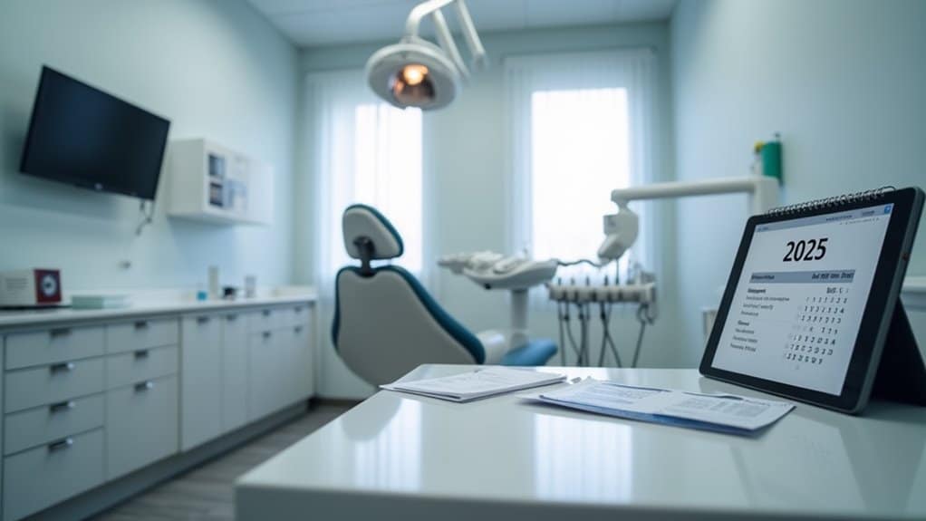 For routine preventive care, you’ll encounter varying frequencies based on age. Delta Dental requires fluoride treatments every 6 months for patients under 19, switching to 12-month intervals for adults. Bitewing X-rays are limited to annual sets for those 23 and older under GEHA’s plan. Sealants are typically restricted to patients under 19, with 5-year replacement intervals. These age-based distinctions markedly influence your coverage options and treatment planning, particularly for specialized services like orthodontics.